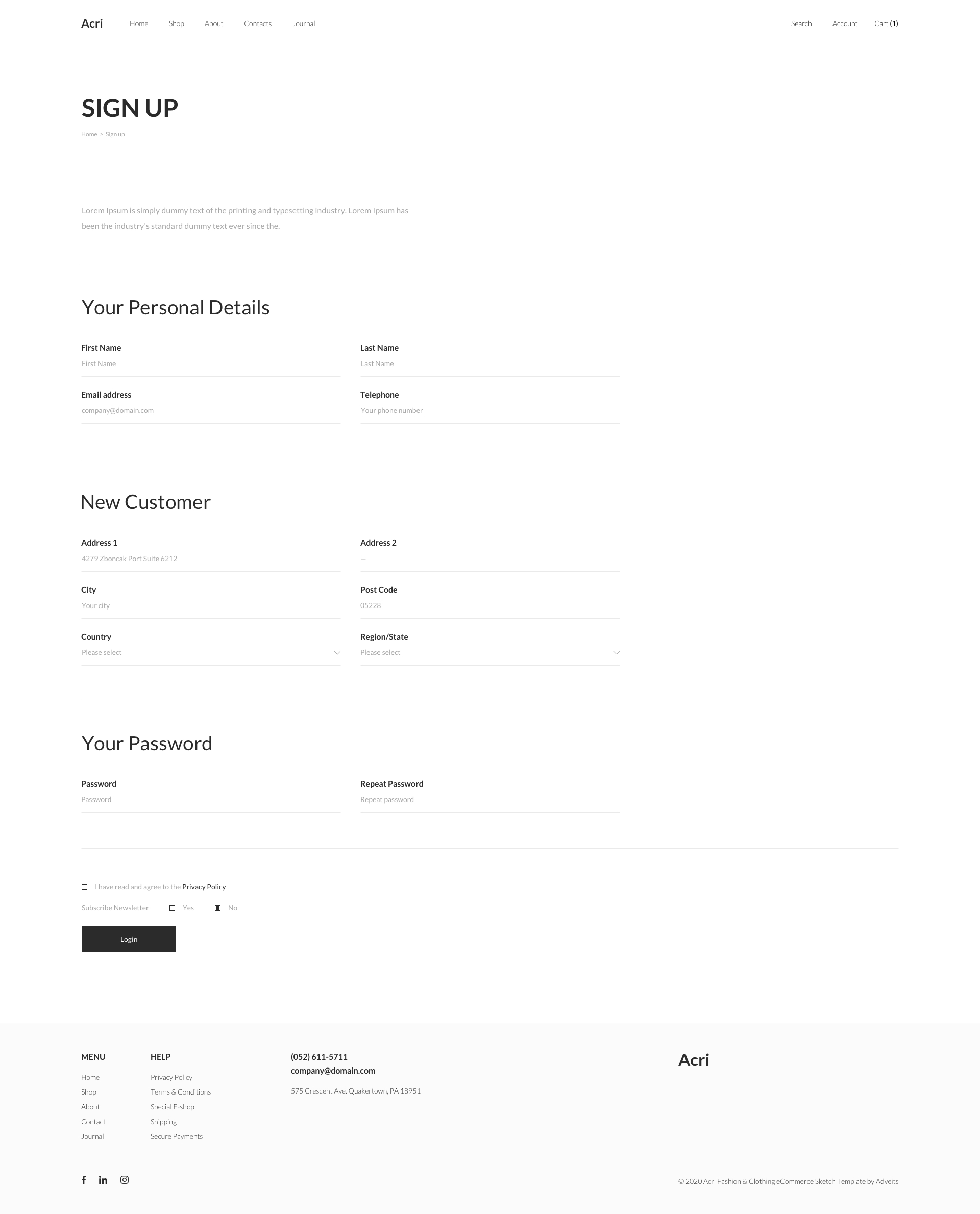 Acri – Fashion & Clothing eCommerce Adobe XD Template